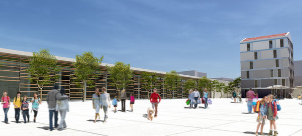 Il complesso, che si sviluppa su un’area di intervento di 22.500 mq, ridisegna attraverso un linguaggio contemporaneo un brano focale della cittadina riqualificando l’area degradata con l’inserimento di funzioni private (residenza, commerciale, direzionale e ricettivo) connesse da spazi urbani (piazze e ambiti pedonali) e da edifici con funzioni pubbliche (impianti sportivi coperti, spazi fieristici e scuola).